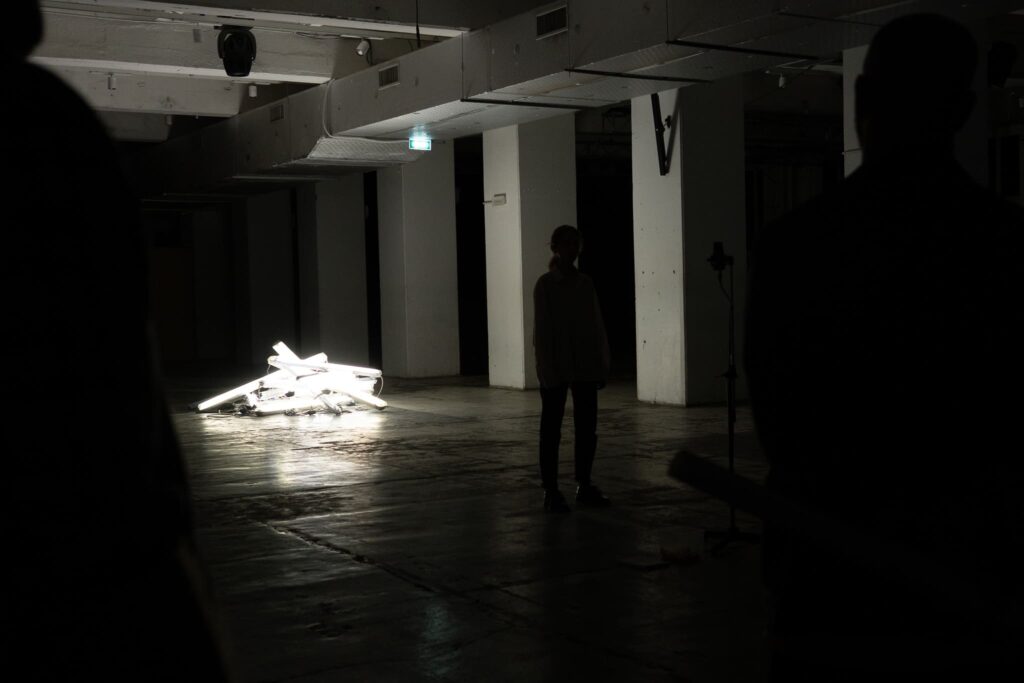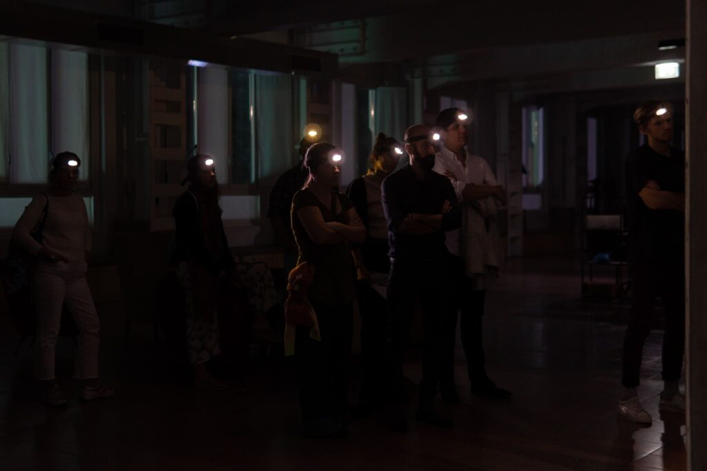 A small group of spectators moves through the former factory, accompanied by a performer/guide who orients their steps and trains their gaze towards overflow and tenderness. Unexpected visual and sound appearances, enunciations of engagement rules, and practices of resistance rewrite the dramaturgy of everyday workspaces.