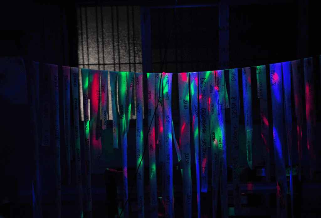 According to the artists, to cross through an environment is always a relational and contextual practice of exploration, of rewriting (of memory as well as of the future), and of the temporary occupation of undesignated spaces—thus, a non-neutral action. In the clandestine gestures of “gathering,” of “making a market,” and “throwing a party,” the exhibition space becomes, through this operation, a potential site of encounter.