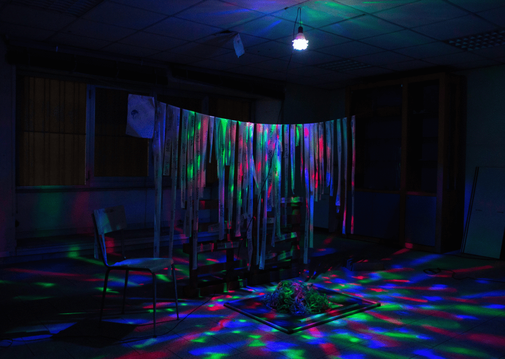 Inforestarsi (in viaraffineria) is an installative/participatory device conceived by Gaia Ginevra Giorgi with Vittoria Assembri. Created for the project Stendalì – Suonano Ancora, the work reflects on the threshold-space and on crossing as a moment of contamination and the proliferation of new possibilities.