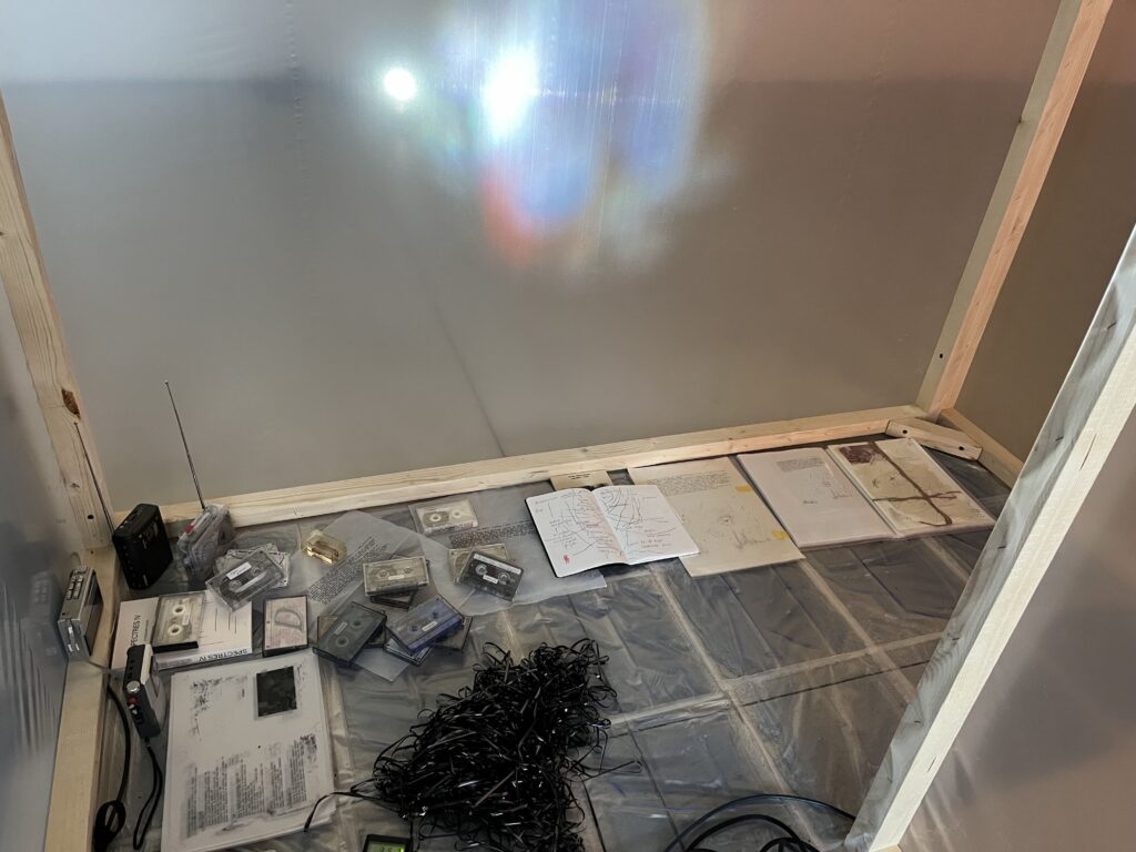 The work, moving in the field of hauntology, questions the relationships between memory, archive document and ghost. No archive will restore us is a performative installation for one viewer at a time, hovering between archaeology and imagination. An impossible archive is freely navigated by the visitor, who, by choosing what to engage with, co-creates an unprecedented micro-dramaturgy/editing of texts, images, actions, and sounds with the artist. Developed in the context of RESEARCH CAMPING 2024 | Floating Bodies.