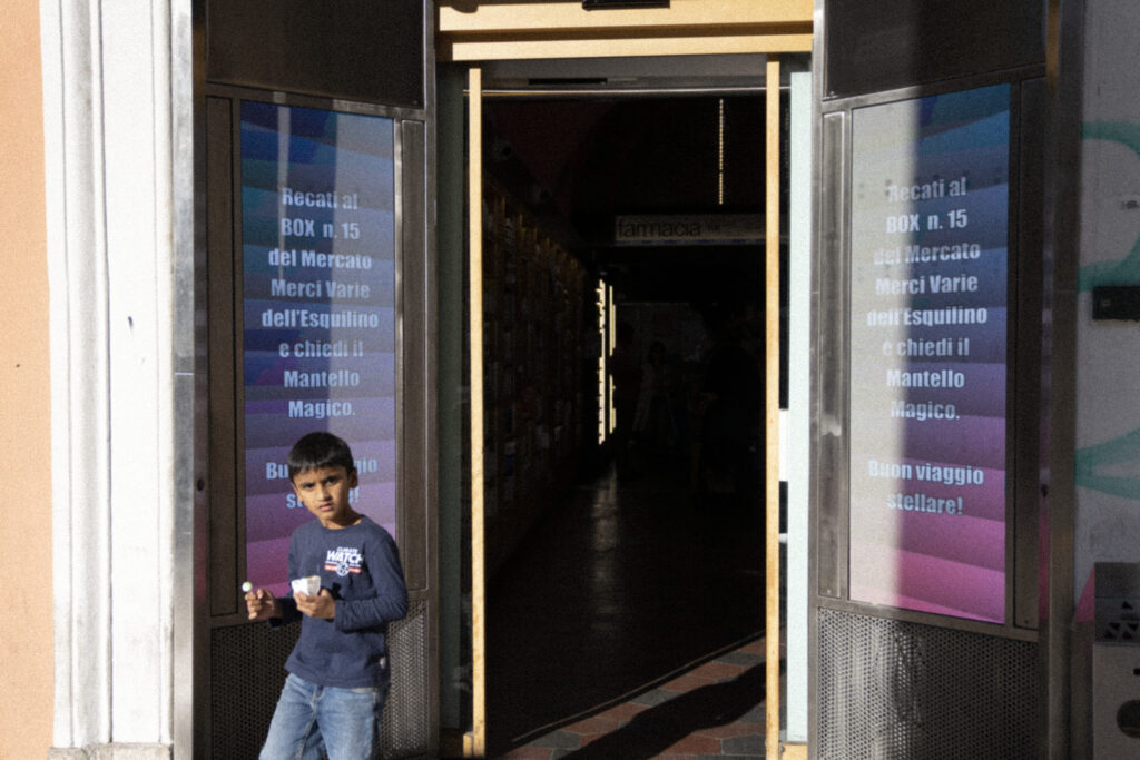 Padiglione delle Meraviglie is a performative intervention conceived for the urban context of Piazza Vittorio in Roma. The performance takes the form of a participatory, multi-stop walk, drawing inspiration from and expanding the concept of the “urban marvelous,” as defined by Renato Nicolini to describe the “practices of the ephemeral city” introduced in 1977 with the Estate Romana cultural project. For this occasion, the artists engaged residents, community organizations, and local businesses surrounding the square to activate a practice of magical and fantastical observation and rewriting of the everyday.